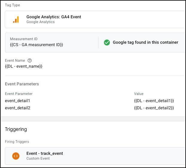 In GTM, with the Variables and Trigger set up, you can have an GA event tag that looks like this: